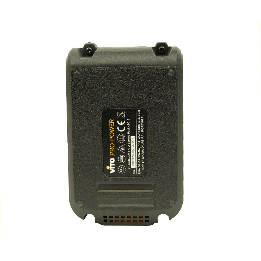 batterie 4.0 ah vitopower 20 v li avec lumière led pour indiquer le niveau de charge. Très légère et facile à transporter. Compatible avec la gamme ego.
