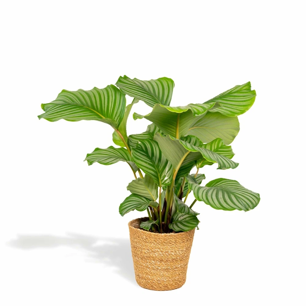 Calathea Orbifolia Et Son Panier Naturel – H65cm, ø19cm – Plante D’intérieur