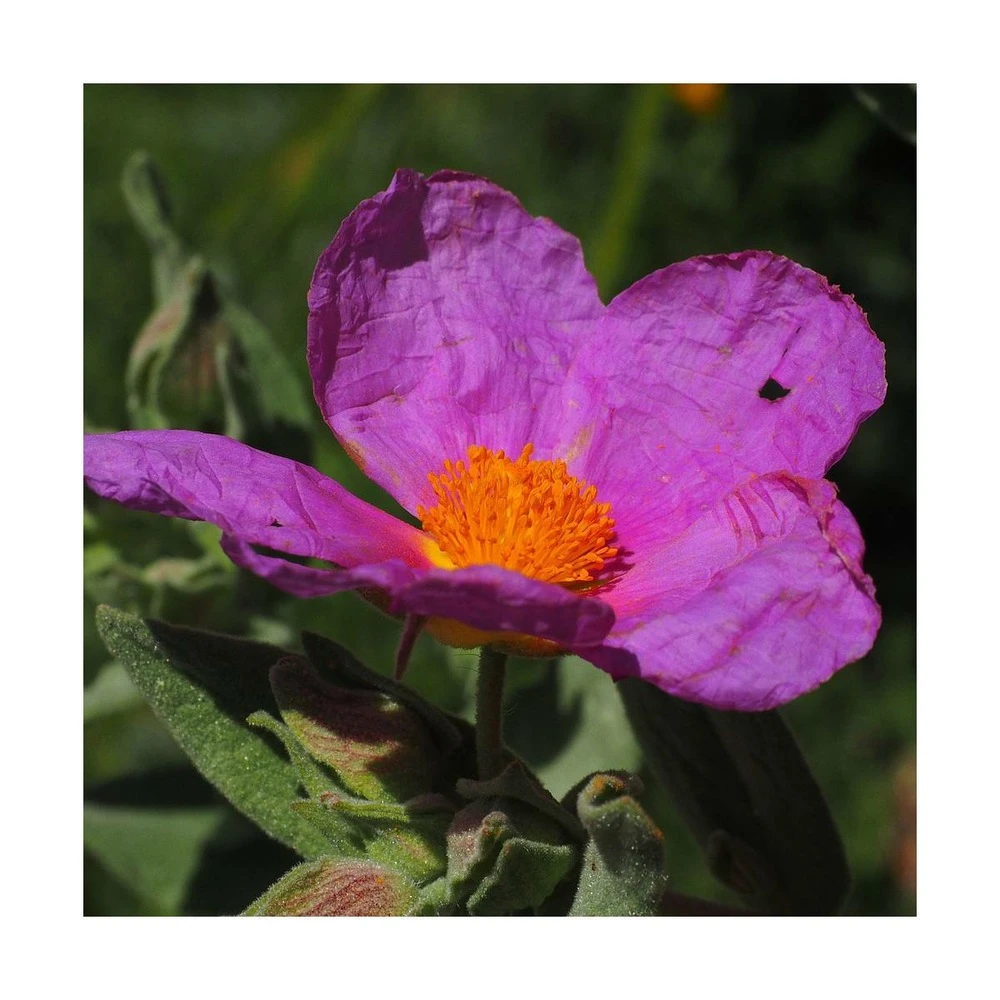 la cistus purpureus ou ciste pourpre en français est une plante est un arbrisseau méditerranéen. Cette plante forme un petit dôme bien régulier et produit en plein coeur de l’été une jolie floraison rose assez vif. Son feuillage est persistant, vert glace et légèrement duveteux. À protéger du froid l’hiver.