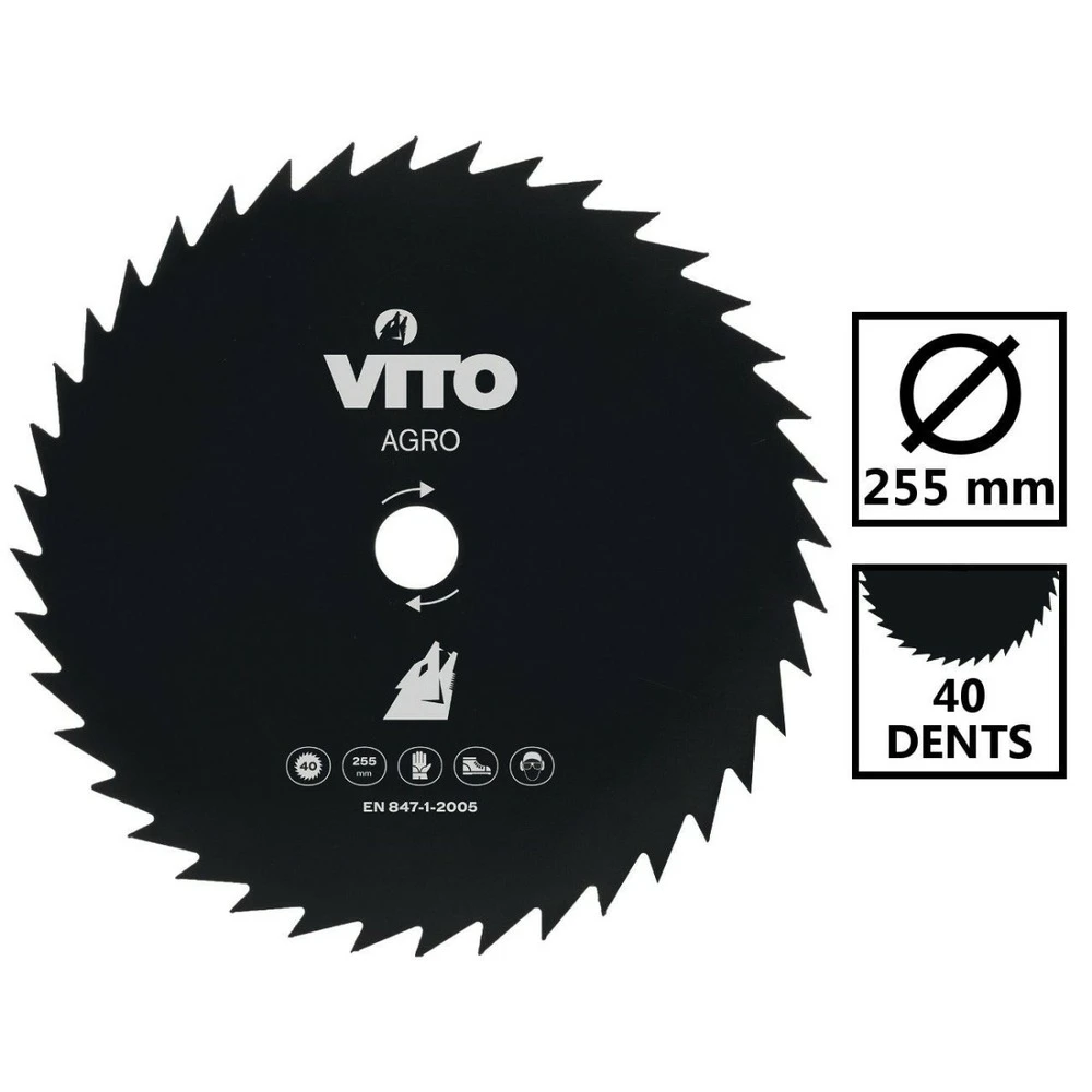 cette lame de coupe pour débroussailleuse possède 40 dents pour un diamètre de 255mm.alesage 25.4
