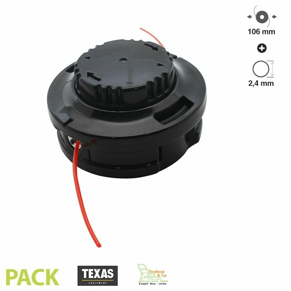 - tête de débroussailleuse texas lux en polypropylène et nylon, solide et robuste. Diamètre 106mm. Filetage central 10 x 1.25 mm.