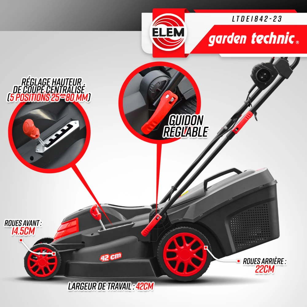 Tondeuse à Gazon électrique 1800w - 42cm - Elem Garden – Image 2
