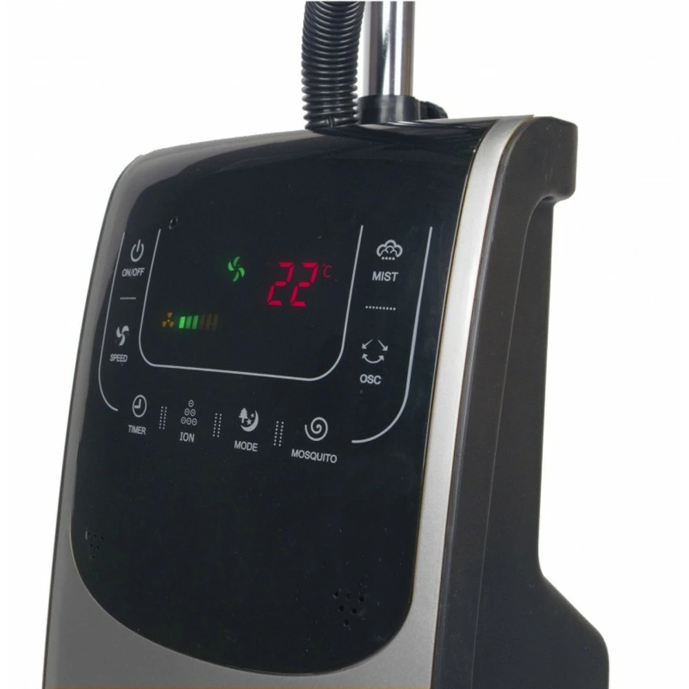 Ventilateur brumisateur rafraichit une surface de 30m’ de plus de 6°c. 3 vitesses. Affichage digital de la température. Fonction ionisateur. H. 125 à 135cm / autonomie:jusqu’à 14 h / hauteur:135 cm / inclinable:oui / marque:o’fresh / surface de rafraîchissement:30 m’ / télécommande:oui / type de produit:ventilateur brumisateur